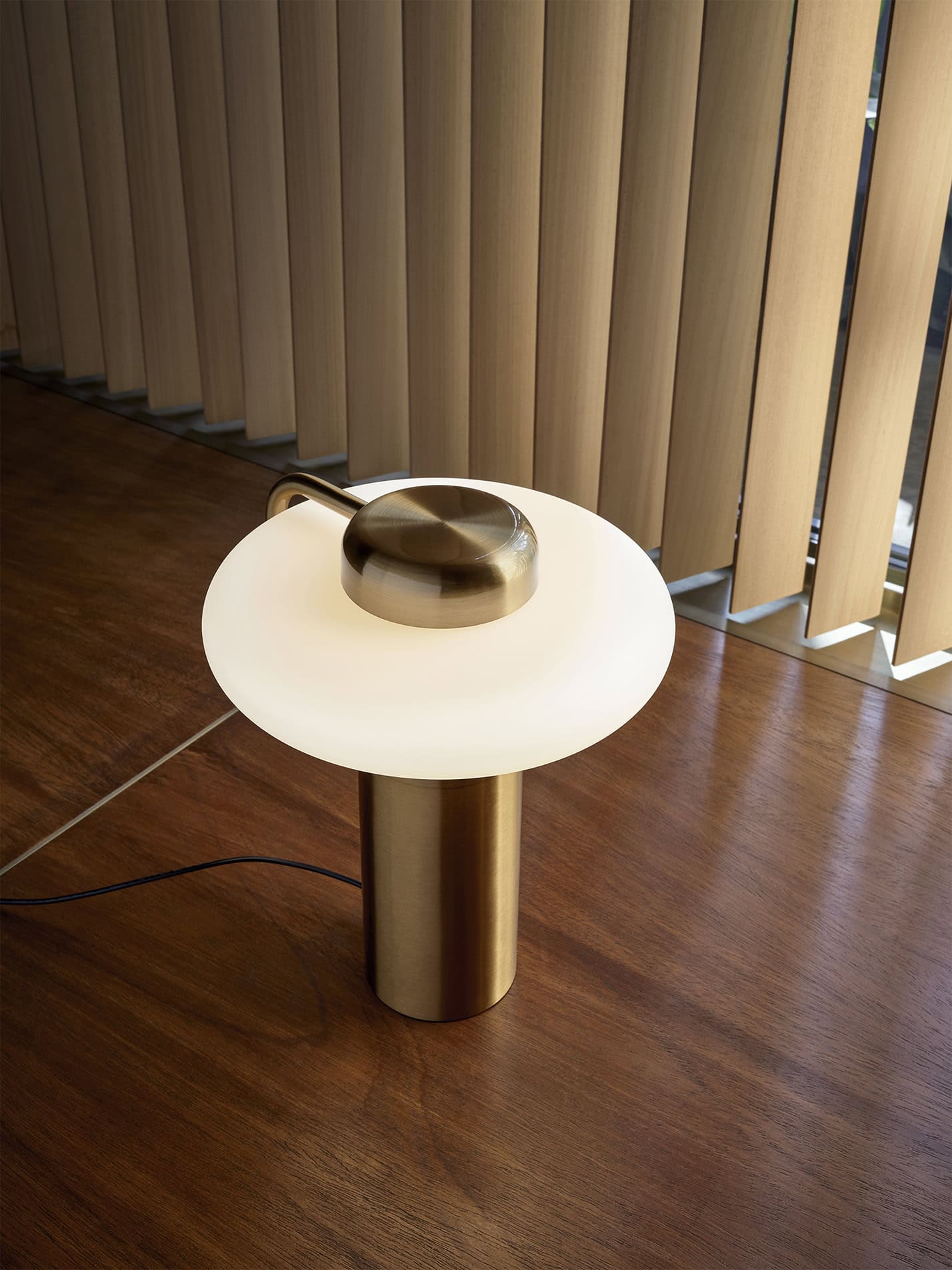 A small masterpiece of elegance and functionality that brings light within reach. The diffuser appears almost suspended above the base, while the delicate curve of the structure enhances its lightness. An essential yet highly characterful stroke that spreads an intimate and serene atmosphere.