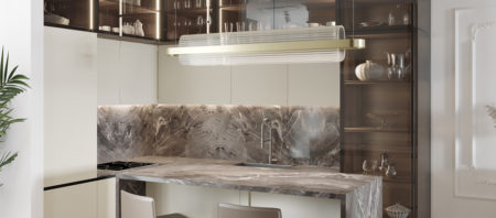 DescrizioneLampada a sospensione con diffusore in vetro texturizzato curvato. Struttura in metallo verniciato.