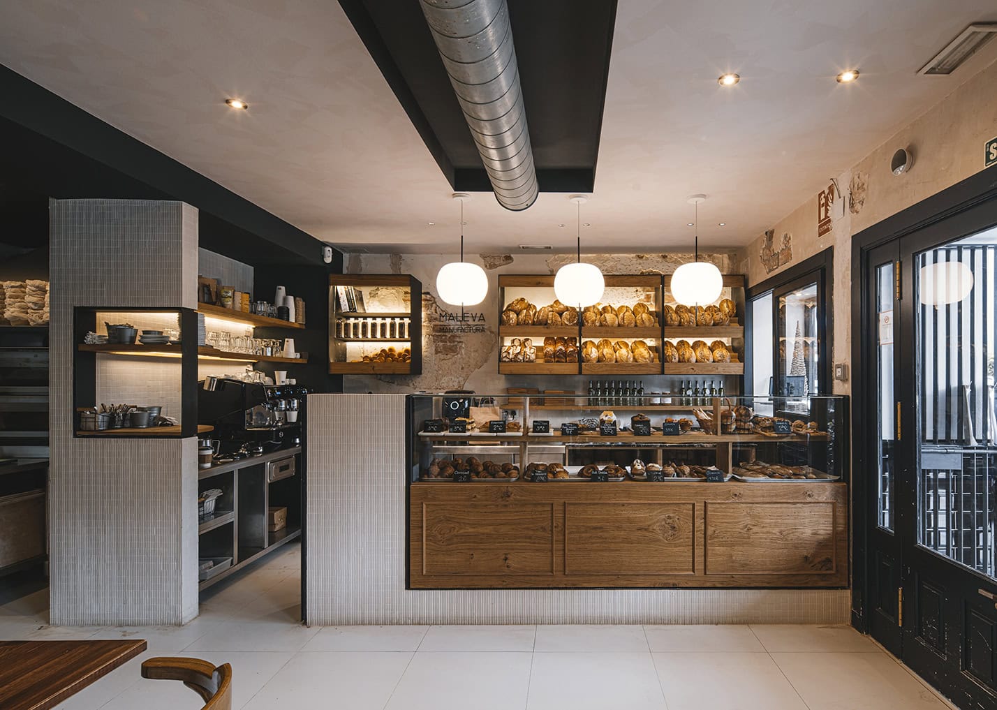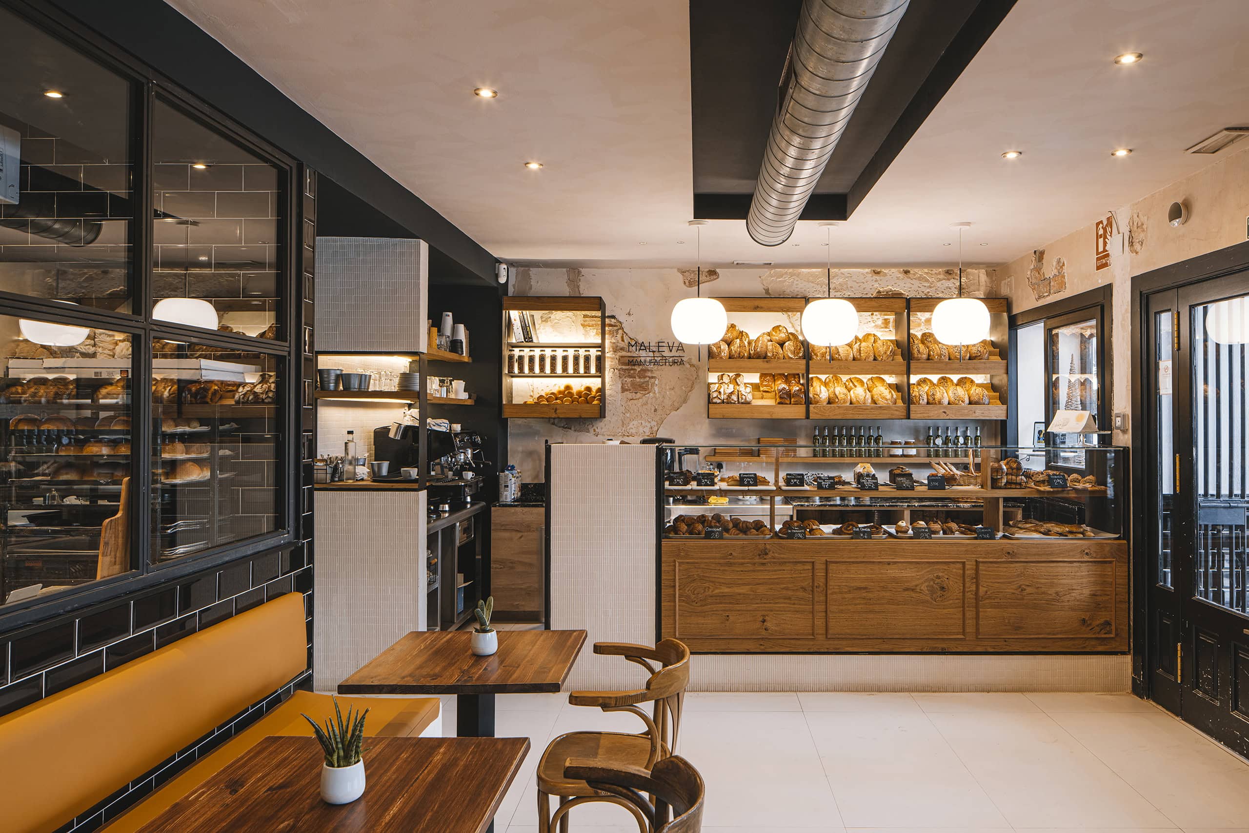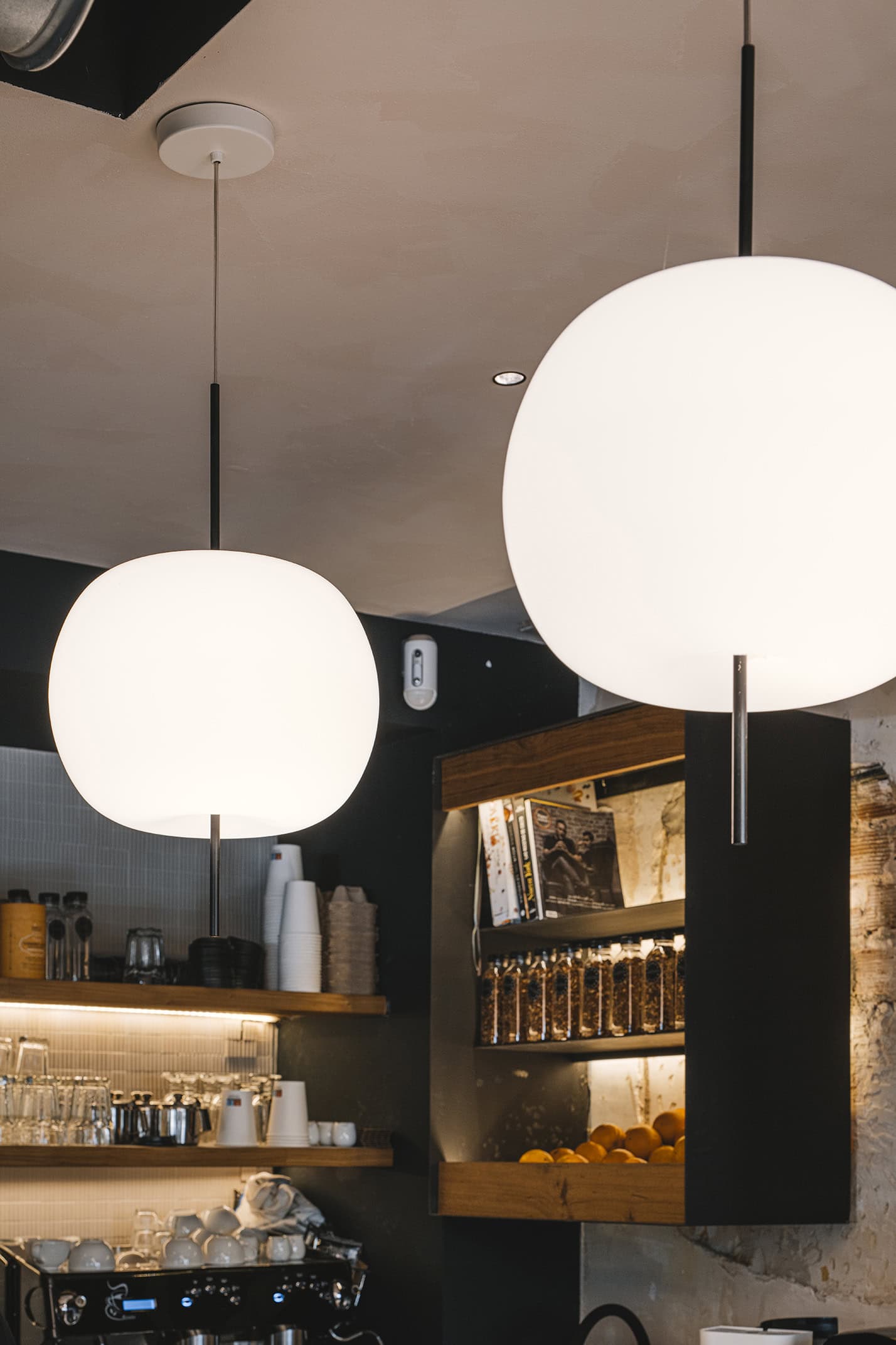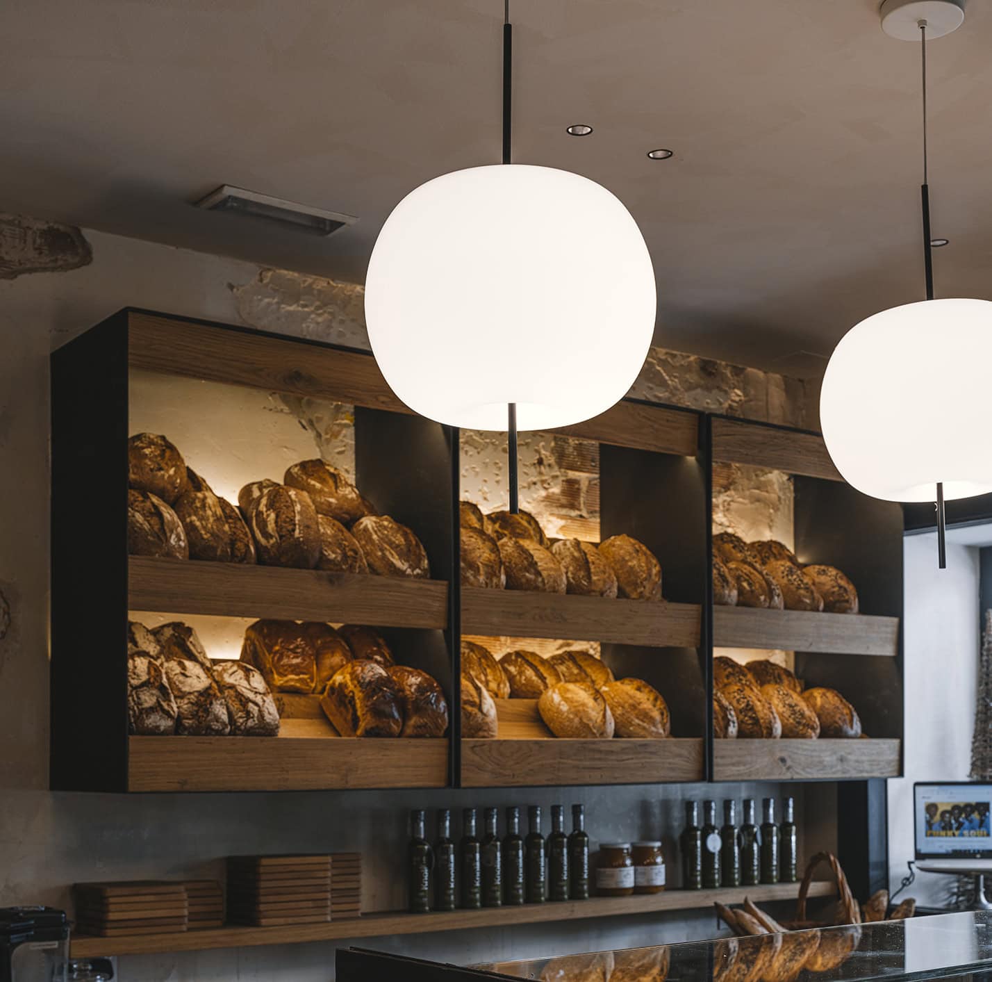 Presso la Maleva Bakery di Marbella, le Kushi 16 Suspension illuminano lo spazio con la loro luce calda e sferica. Il design dei diffusori si integra perfettamente con i toni naturali del legno e le texture materiche delle pareti, creando un’atmosfera accogliente e artigianale.